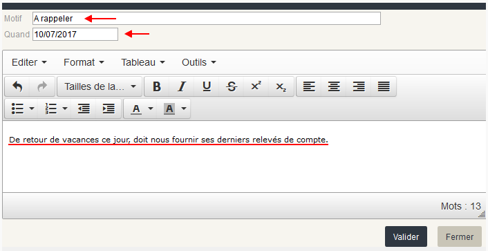 Vous saisissez le motif, la date à laquelle l’intervention est prévue ainsi que l’explication :